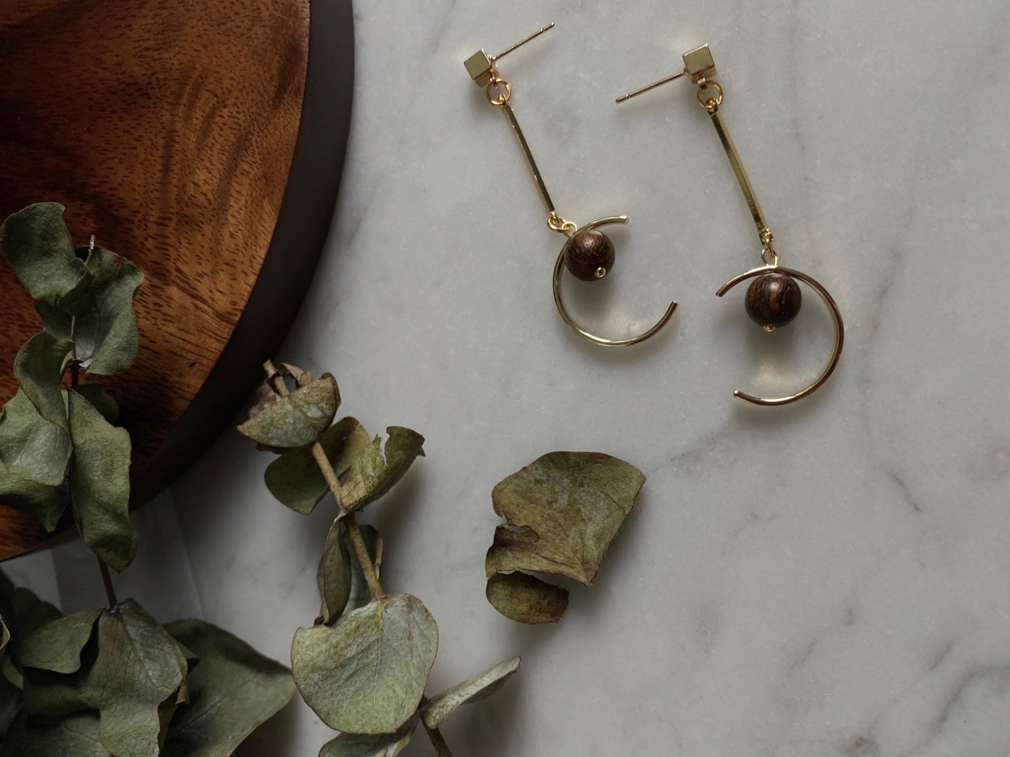 Purple Heart Wood Jewellery Set - Earrings & Brooch